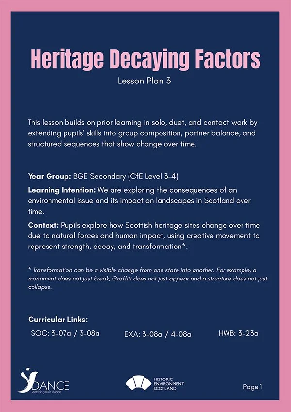 Working in partnership with Historic Scotland and Highlife Highlands, Heritage Remixed aims to engage socially isolated young people aged 12-16 from the Highlands of Scotland in dance and to attract young people to Historic Environment Scotland sites in their localities through dance. Ten young people from one of the Highlife Highlands youth clubs worked with a YDance artist to create a dance film based on the history of Fort George in Nairn.